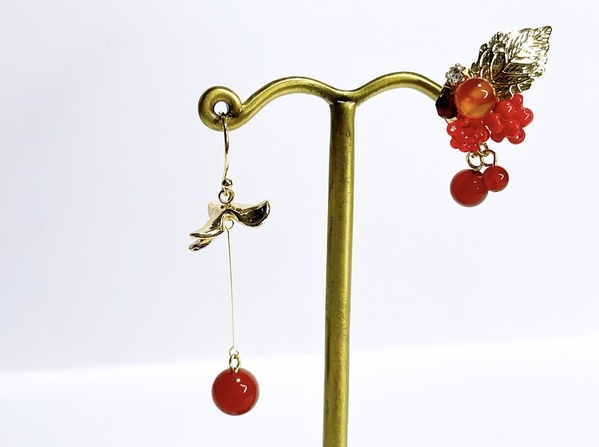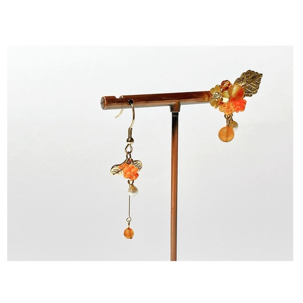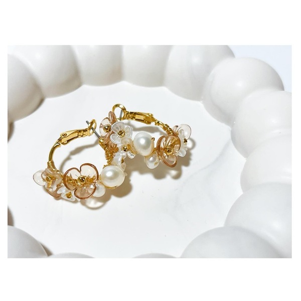 淡水パールとお花のClassic hoop pierce ~セピア~
