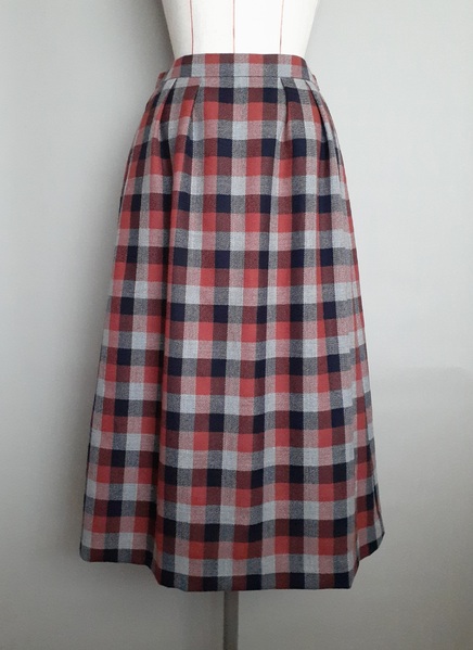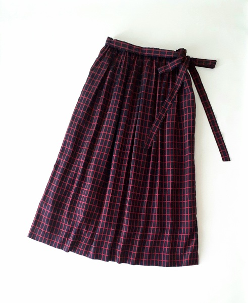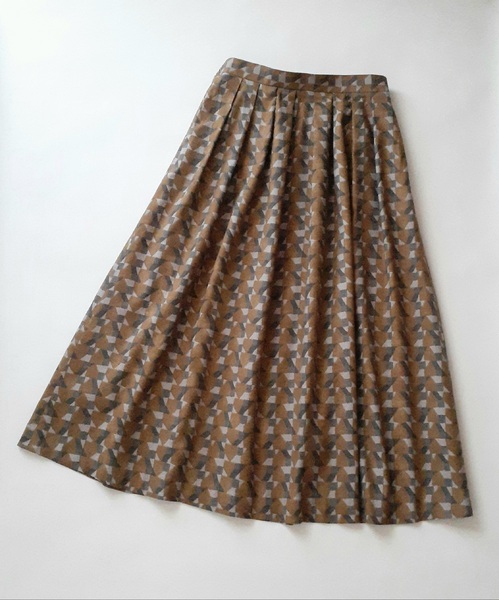ビエラプリントのタックフレアスカート〈マスタード&グレー〉