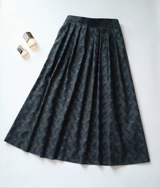 ビエラプリントのタックフレアスカート〈グリーン&ネイビー〉