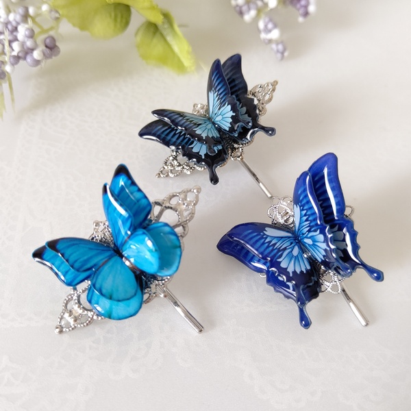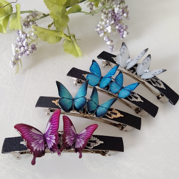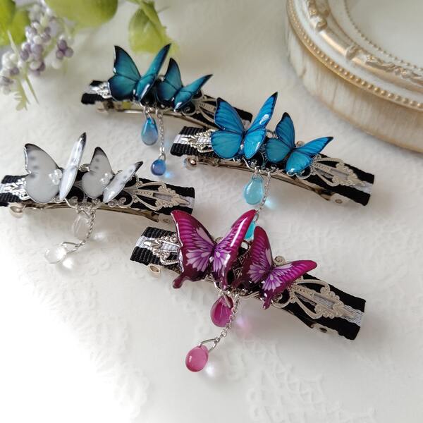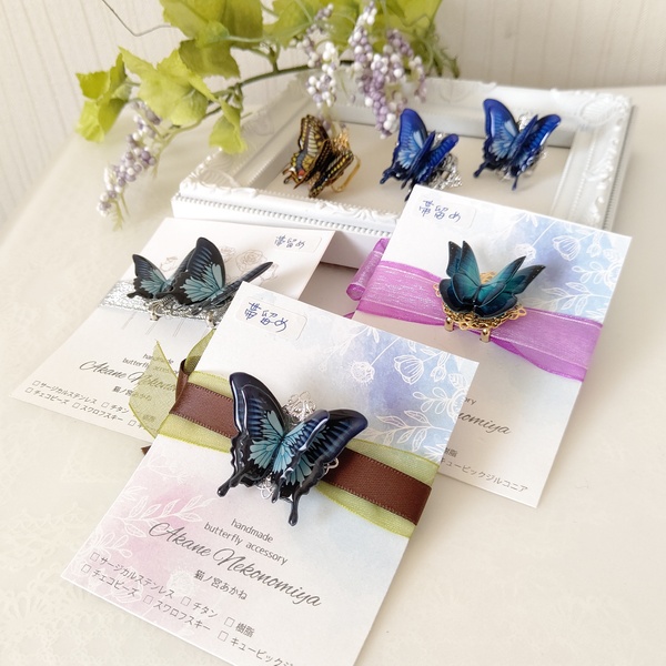 簪(かんざし)、帯留めなどの和小物や普段使いしやすい軽くて小さな蝶々ピアス(イヤリング)蝶々ネックレス、バレッタ、指輪などなど。
