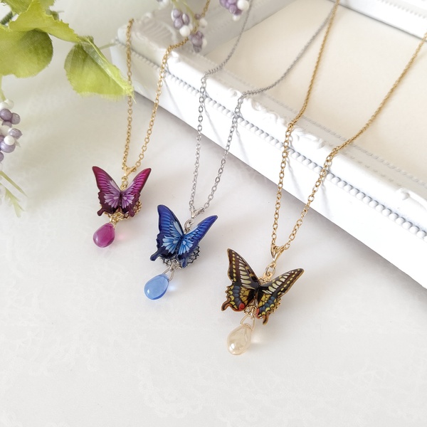 羽ばたく蝶々のネックレス