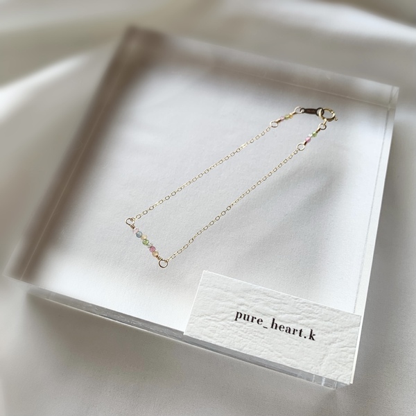 《14kgf》マルチカラートルマリン 華奢ブレスレット