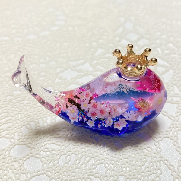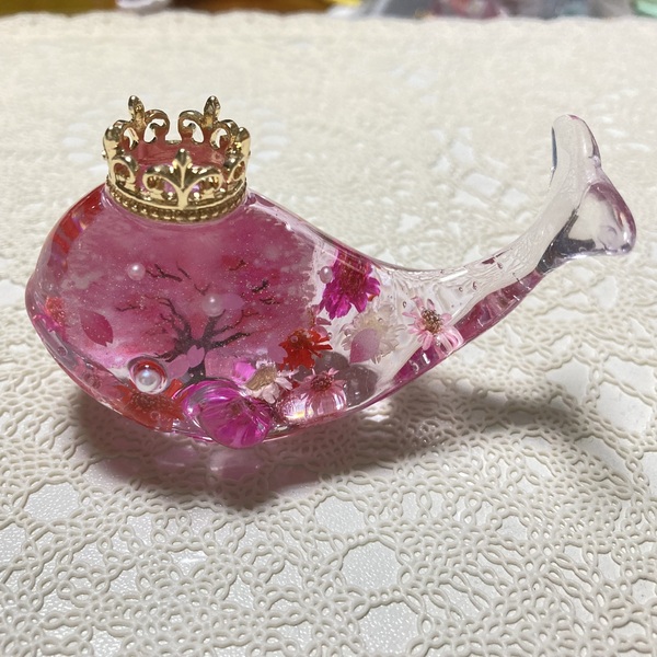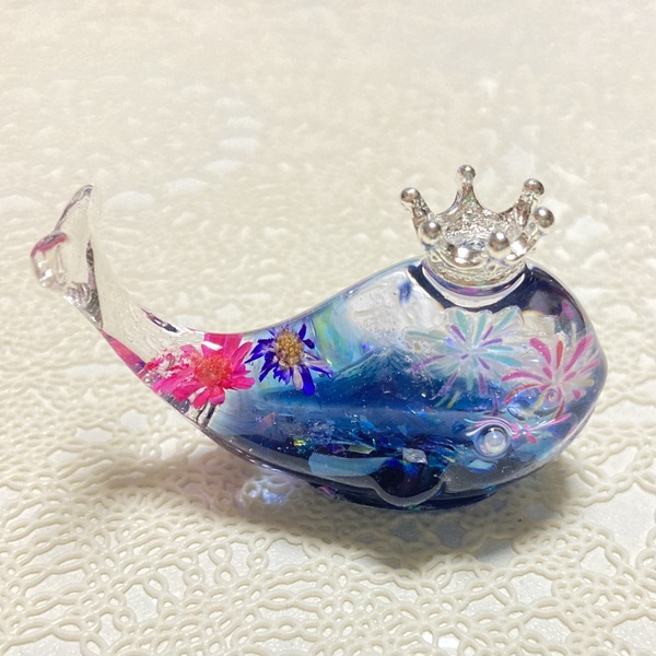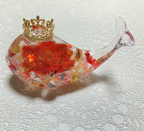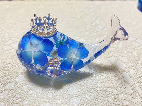 本物のお花とレジンを使ったくじらのハーバリウム