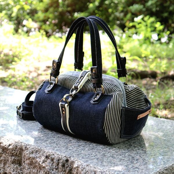 Poccia【藍の音ainone】大きな口のボストンバッグ