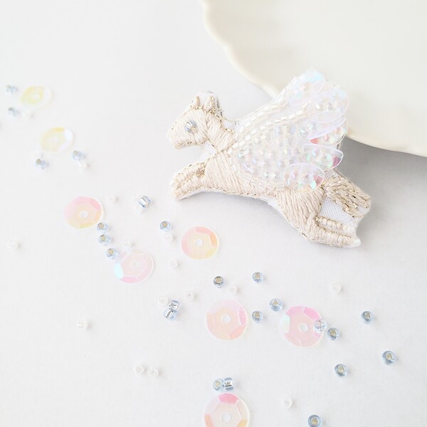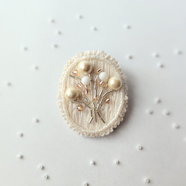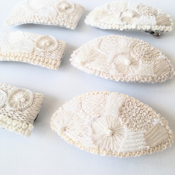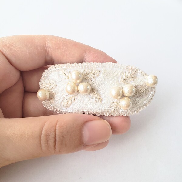 ミルキーホワイト*花のビーズ刺繍バレッタ