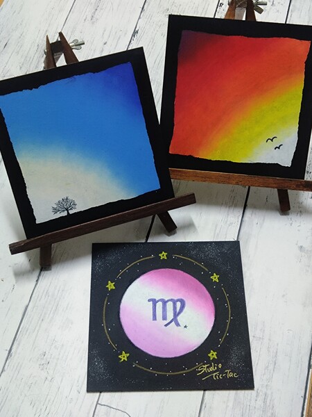 専用のブラックボードに鮮やかなグラデーションで自分色の空を描きましょう。