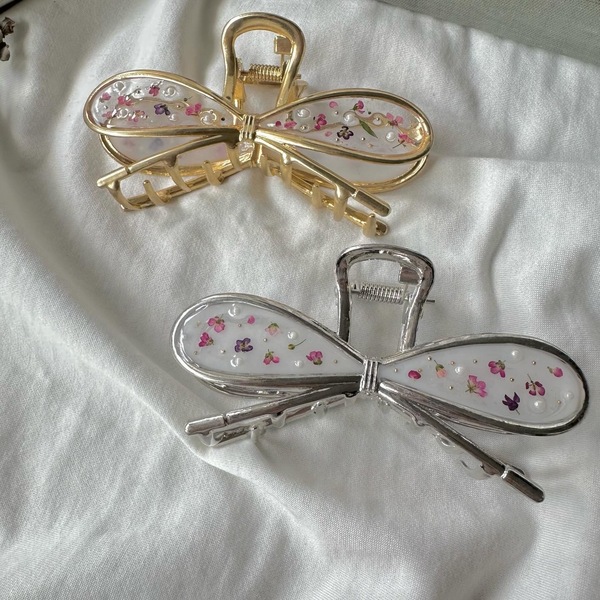 シルバー リボン型ヘアクリップ